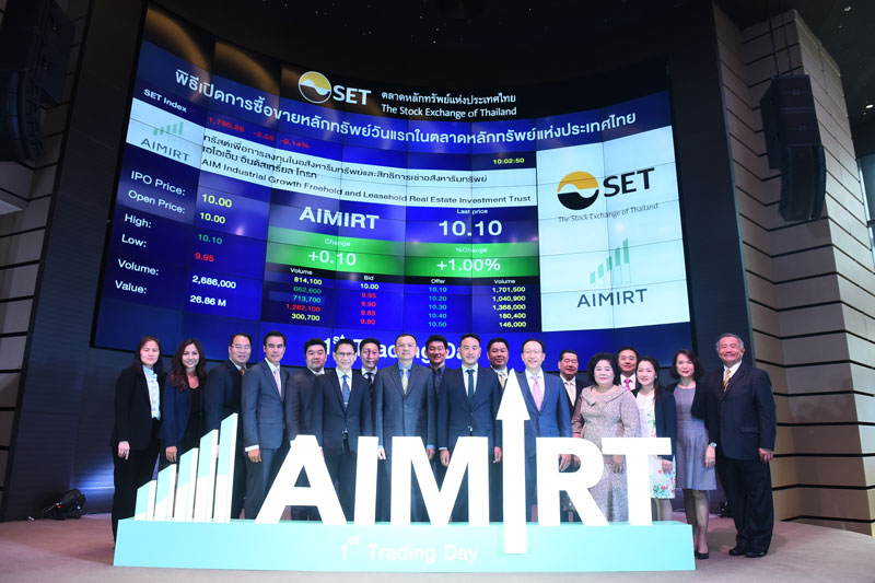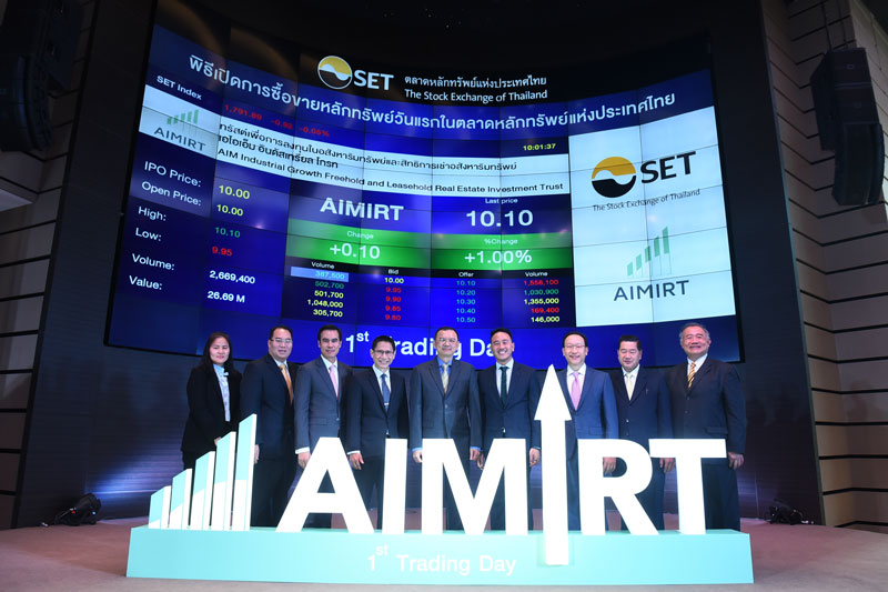ทรัสต์ AIMIRT เข้าเทรดวันแรก มั่นใจทรัพย์สินที่ลงทุนมีผลการดำเนินงานที่โดดเด่น หนุนคาดการณ์ปี 61 ให้ผลตอบแทน 7.38% พร้อมวางนโยบายลงทุนเพิ่มเติมในอนาคต