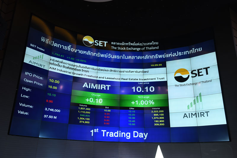 ทรัสต์เพื่อการลงทุนในอสังหาริมทรัพย์และสิทธิการเช่าอสังหาริมทรัพย์ เอไอเอ็ม อินดัสเทรียล โกรท (AIMIRT) เข้าเทรดในตลาดหลักทรัพย์แห่งประเทศไทยเป็นที่เรียบร้อยในวันนี้ (9 ม.ค. 2561) มั่นใจห้องเย็นและคลังสินค้าของกลุ่ม JWD และคลังสินค้าโครงการทิพย์ 7 ของ TIP ที่กองทรัสต์เข้าลงทุนในกรรมสิทธิ์ทั้งหมด มีผลการดำเนินงานที่โดดเด่นจากอัตราการเช่าพื้นที่เต็ม 100% หนุนประมาณการผลตอบแทนปี 2561 จากการเข้าลงทุนครั้งแรก อยู่ที่ประมาณ 7.38% หรือ 0.7377 บาทต่อหน่วย พร้อมวางนโยบายเข้าลงทุนในทรัพย์สินเพิ่มเติมในอนาคตเพื่อขยายขนาดกองและเพิ่มโอกาสสร้างผลตอบแทนที่ดีขึ้น